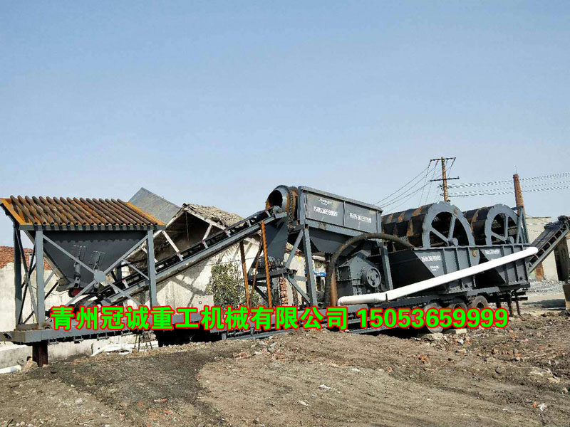 本套設備為發往滕州的車載移動式破碎制砂洗沙設備,處理量為每小時100-120立方(150-180噸)。可以使用半掛車頭或者挖掘機、裝載機等牽引車輛輕松移動到工作場地。