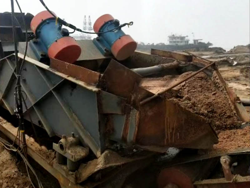 振動電機水平方向分力作用下,篩體會給物料一個水平方向的分力,推動已脫水的物料到前端篩口排出。